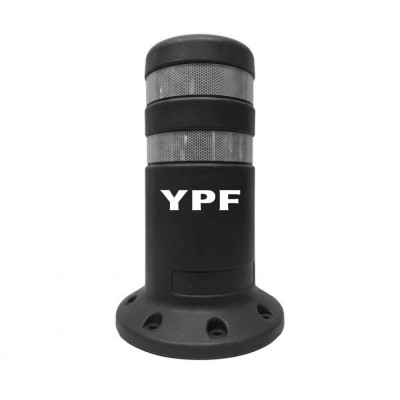 Bolardo plástico "TIPO CILÍNDRICO" fabricado en material de PVC flexible con dureza 90 Shore A, filtro UV para protección solar. Base de apoyo de 30 cm de diámetro con 6 orificios diámetro 10 mm para sujeción al suelo mediante anclaje mecánico. Altura 50 cm. Peso total 20 kg. Provisto de un área en bajo relieve de 1cm para la aplicación de 1 banda reflectiva prismática Tipo HIP ( High intensity prismatic ) según normas IRAM ASTM D4956