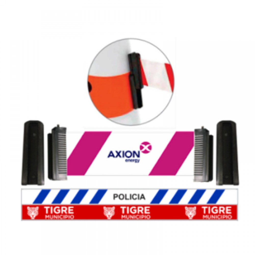 Accesorio para demarcación perimetral. Compuesto por cinta plástica impresa full color personalizada, un juego de Accesorios plásticos (Macho/Hembra) y elementos de fijación. Medidas : 4 cm de ancho x 150 cm de largo. Adaptable a toda nuestra línea de conos y columnas CONOFLEX.