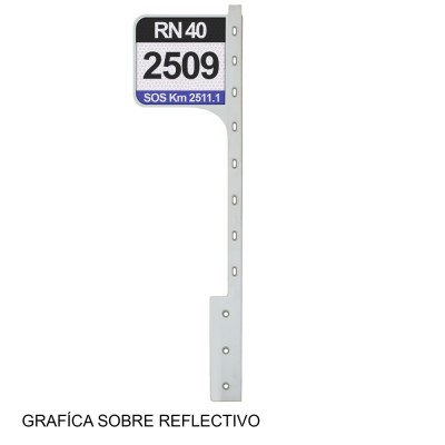 Mojón plástico para señalización vial, fabricado en material polietileno de media densidad, con filtro UV para protección solar mayor a 10 años. Conformado en “una sola pieza”, con sus aristas diseñadas para evitar la acumulación de nieve. Medidas: Altura 200 cm x 60 cm de ancho y con un espesor de 7,5 cm. En su parte superior cuenta con un espacio de 50 x 50 cm bajo relieve de 0,5 cm para proteger la cartelería. En su parte inferior presenta un poste de 150 cm para su amurado, como mínimo 50 cm. Provisto con 3 orificios de Ø 35 mm, para instalar traversas, mejorando su anclaje al suelo.