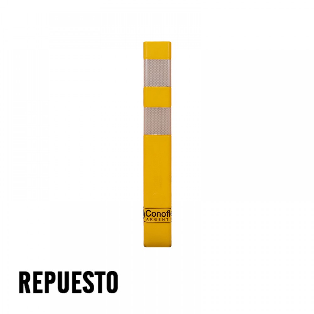 Delineador rebatible de forma T para demarcación vial, fabricado en material copolimero flexible, con filtro UV para protección solar. Altura 60 cm, ancho de 8 cm y un peso de 1,1 kg. Presenta 2 bandas reflectivas de 7,5 cm de ancho cada una, con características HIP (HIGH INTENSITY PRISMATIC) según normas IRAM ASTM D4956 Tipo-3. Las mismas se encuentran bajo relieve para su mayor protección.