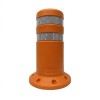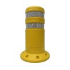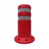 Bolardo plástico "TIPO CILÍNDRICO" fabricado en material de PVC flexible con dureza 90 Shore A, filtro UV para protección solar. Pintado con pintura poliuretanica de alta resistencia. Base de apoyo de 30 cm de diámetro con 6 orificios diámetro 10 mm para sujeción al suelo mediante anclaje mecánico. Altura 50 cm. Peso total 20 kg. Provisto de un área en bajo relieve de 1cm para la aplicación de 1 banda reflectiva prismática Tipo HIP ( High intensity prismatic ) según normas IRAM ASTM D4956