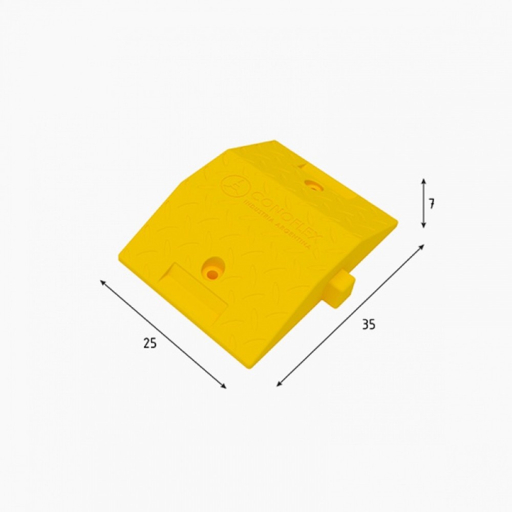 El cordon plástico doble montante código ME35-25-7 AM , está fabricado con Polipropileno y Co Polímeros, con agregados de resinas plásticas y minerales, compuestos con aditivos antioxidantes y Filtros UV es especialmente resistente a altas y bajas temperaturas, los Impactos, la Compresión y los Hidrocarburos. Su estructura se ve reforzada por paredes de entre 7,5 mm y 5,5 mm de grosor que le otrorgan una extraordinaria resistencia a la compresión. Consistente en un sistema que cada módulo se encastra a continuación del otro de manera continua o separada. Reflectivos: Cada Módulo posee 2 Lentes reflectivos de Policarbonato de alta intensidad de reflexión co inyectados en el cuerpo del producto, de 50 mm largo x 20 mm de alto.
