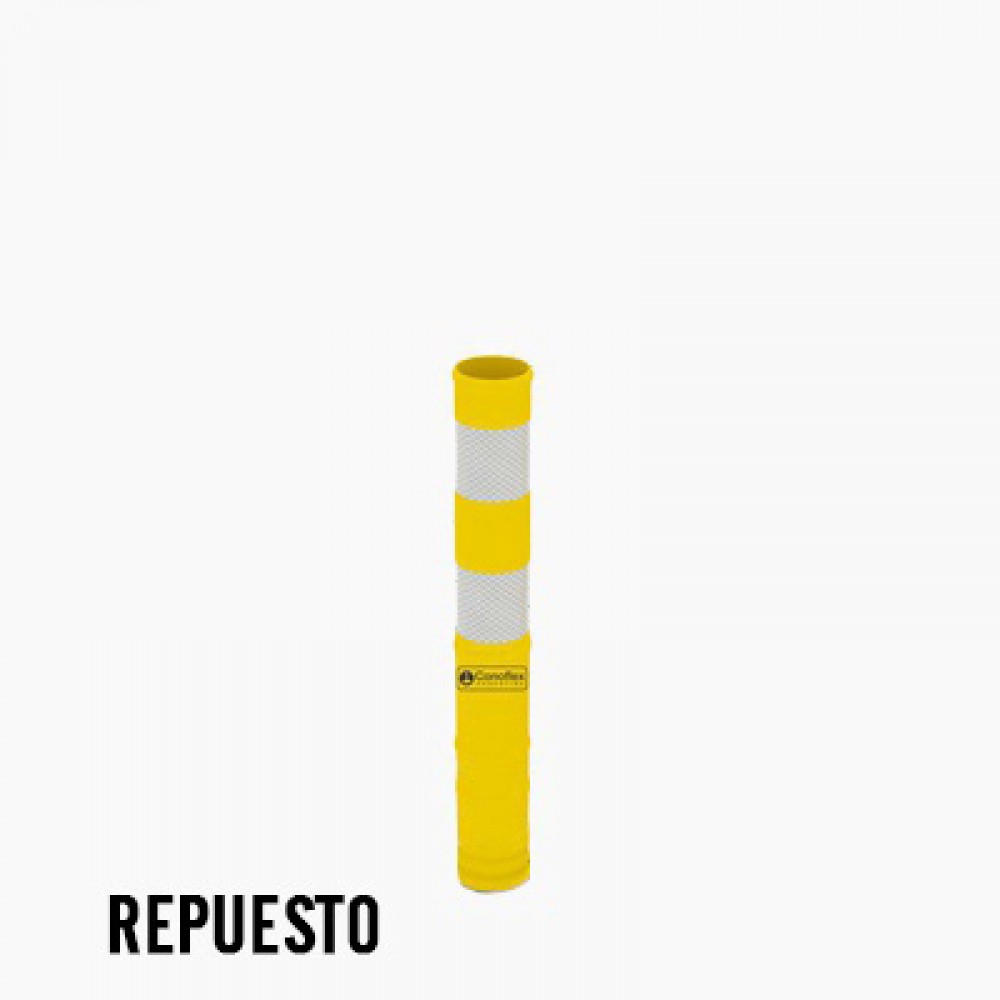 Repuesto Delineador rebatible para demarcación vial, fabricado en material copolimero flexible, con filtro UV para protección solar. Presenta 2 bandas reflectivas de 7,5 cm de ancho cada una, con características HIP (HIGH INTENSITY PRISMATIC) según normas IRAM ASTM D4956 Tipo-3. Las mismas se encuentran bajo relieve para su mayor protección.