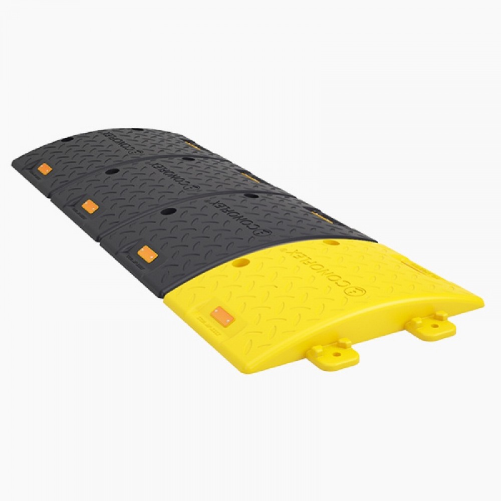 Reductor de velocidad de polipropileno y copolimeros con agregado de resinas plásticas, antioxidantes y filtros UV. Medidas del módulo : 25 cm de ancho x 40 cm de largo de pisada x 5,5 cm de alto, con una estructura reforzada por paredes de entre 4,5 mm y 5,75mm de grosor, peso por unidad de 1,7 kg, un lado con doble encastre macho y el lado opuesto hembra, con superficie superior con diseño antideslizante, cuatro orificios para fijación. Certificación ISO 9001 ( materia prima ), ISO 14001 ( materia prima ) - CERTIFICACIÓN INTI DE COMPRESIÓN AÑO 2022. Garantia 1 año sobre la estructura del producto, protección UV, impactos y compresión.