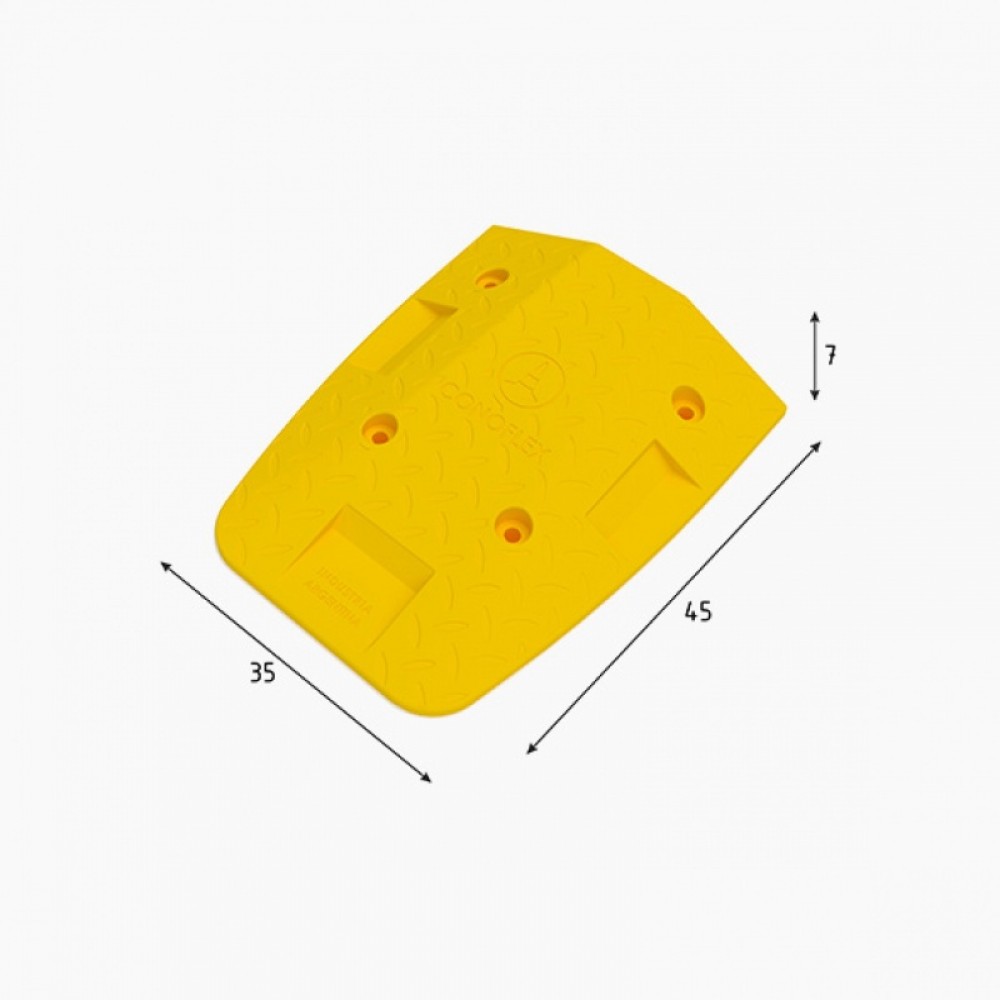 La Puntera para el cordon separador doble montante codigo ME35-45-7 AM esta diseñada especialmente para complementar el módulo del Divisor Vial Metrobus código ME35-60-7 AM, otorga una mayor seguridad y terminación al sistema modular, de división de los carriles en el Metrobus o Bicisendas, está fabricada con Polipropileno y Co Polímeros, con agregados de resinas plásticas y minerales, compuestos con aditivos antioxidantes y Filtros UV es especialmente resistente a altas y bajas temperaturas, los Impactos, la Compresión y los Hidrocarburos. Estructura súper reforzada por paredes de entre 7,5 mm y 5,5 mm de grosor. Cada Módulo posee 3 Lentes Policarbonato de alta intensidad de reflexión co inyectados al producto. Cada Lente tiene 50mm largo x 20 mm de alto.