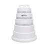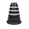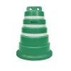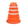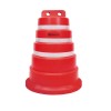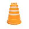 Tambor plástico, “APILABLE”, también llamado Campana, fabricado en material polietileno de media densidad, con filtro UV para protección solar. Está conformado en “una sola pieza”. Medidas: Su base tiene Ø70 cm de diámetro y una altura de 100 cm, su peso es de 9 kg±0,5 kg. Presenta 3 bandas reflectivas de 5 cm de ancho cada una, con características HIP (HIGH INTENSITY PRISMATIC) según normas IRAM ASTM D4956 Tipo-3. Las mismas se encuentran bajo relieve para su mayor protección.